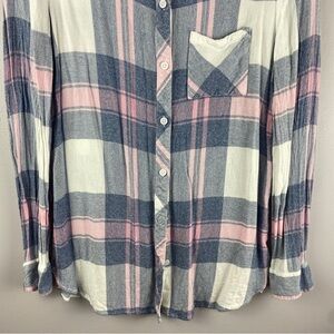 Beachlunchlounge Pink Blue Plaid Rayon Button Down Shirt XS