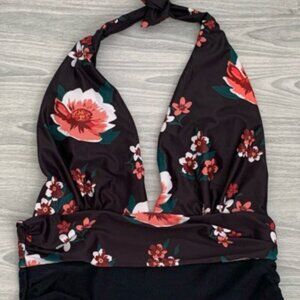 Beachsissi Black Floral Halter One Piece Swimsuit Bathing Suit Sz M