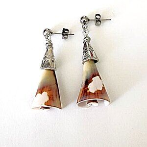 Beachy boho natural shell dangle earrings with stainless steel posts & backings