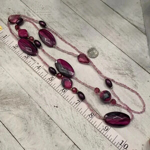 Mix of pink and purple beads on a single 19” strand - can be worn long or doubled.