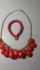 Red Faceted Tear-drop Bead Necklace with Red, Blue-eye Beaded Bracelet.