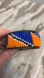 Beaded Aztec pattern bracelet double snap closure 7.5" long blue orange white