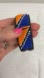 Beaded Aztec pattern bracelet double snap closure 7.5” long blue orange white