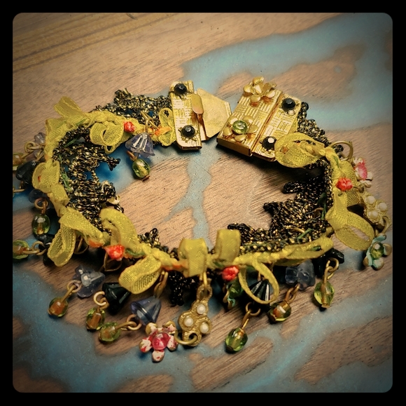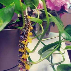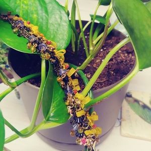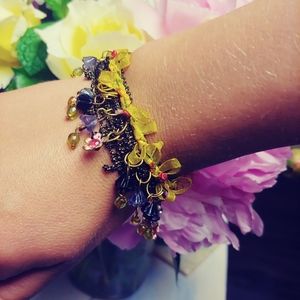 Fabric/bead bracelet. Bought at a boutique. Have had lots of compliments on it.