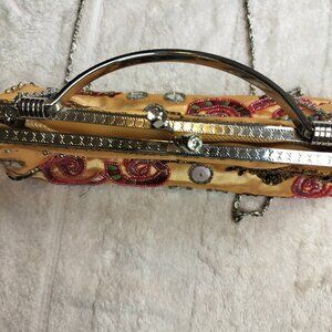 * Features: Intricate butterfly embroidery, kiss-lock closure with rhinestone embellishment, optional crossbody chain strap, and a clean interior slip pocket.