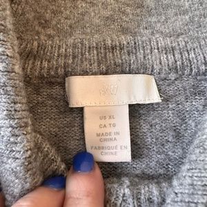 Soft, knit sweater with wool content. Collar decorated with pearlescent plastic beads, long, wide sleeves, and ribbing at collar, cuffs, and hem.