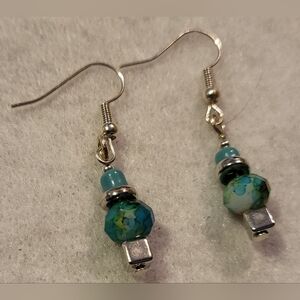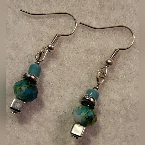 Turquoise/Colourful and silver beaded earrings. Handmade by Kitty Brand new. Never worn. One of a kind.