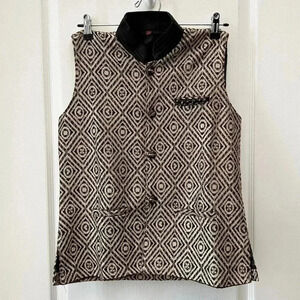 Beaded Embellished Sleeveless Button Front Vest Black Gold XS/Small
