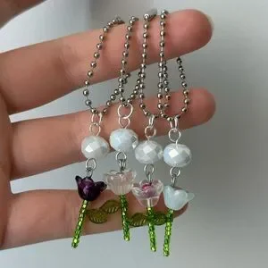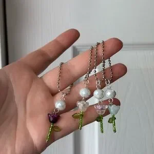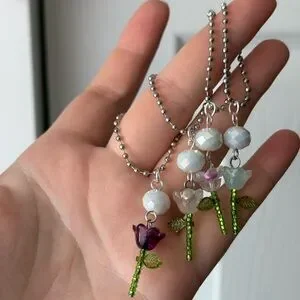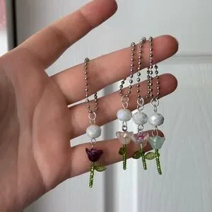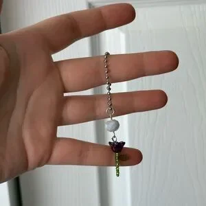 This elegant necklace features a charming purple flower pendant with a green stem, complemented by a white bead. Perfect for adding a touch of nature-inspired beauty to any outfit.
