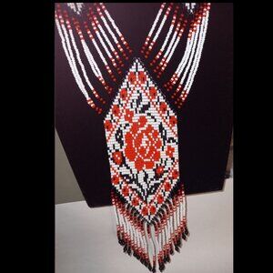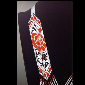 ✨ Experience the elegance of Ukrainian culture with this beautiful gerdan featuring a design inspired by traditional embroidery adorned with roses.