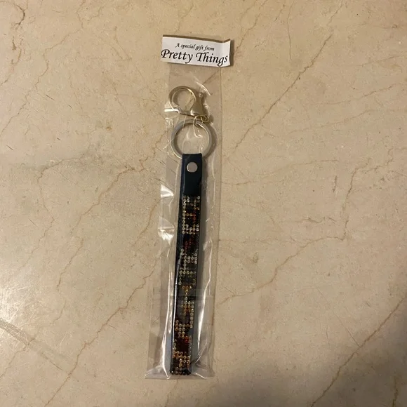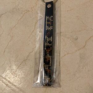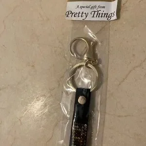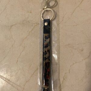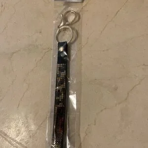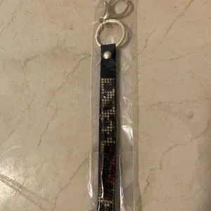 Stylish beaded keychain accessory with a black base and colorful accents. Perfect for adding a touch of elegance to your keys or bag.