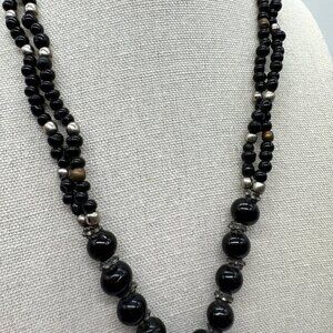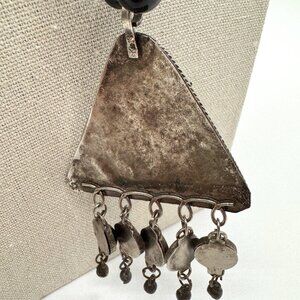 Beaded Necklace Black and Silver Tone Triangle Pendant Gothic