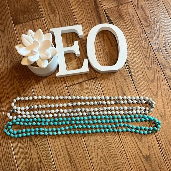 Beaded Necklaces White Turquoise Both long and 29 inches EUC Bundle only