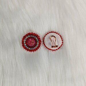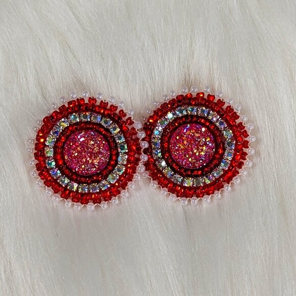 Beaded Red Stud Earrings