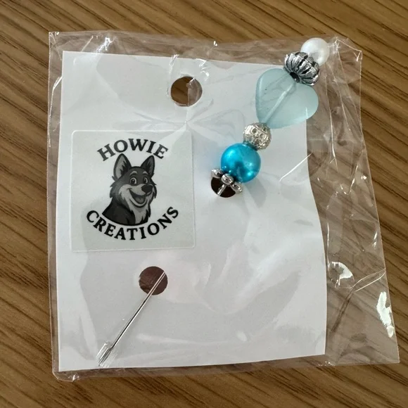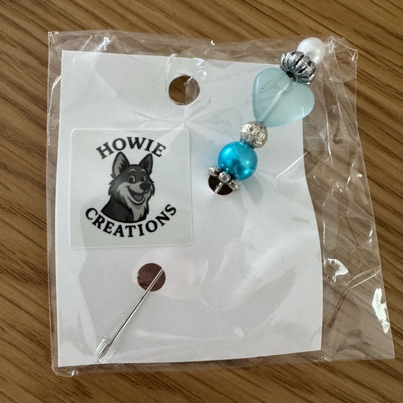 NWOT - Elegant beaded stick pin by Howie Creations. Features blue, silver, and white beads.