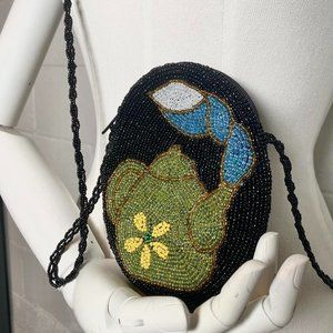 Bring out your inner Alice In Wonderland with this delicate beaded bag for day or night this is such a sweet small bag that brings sparkle to any outfit. It’s very small, and will definitely not hold an iPhone but will fit keys, some lip balm and very small basics