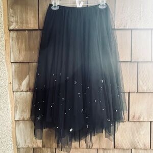 Bring a touch of magic to your next event with the Papillon Beaded Tulle Midi Skirt. The soft elastic waistband ensures comfort, while the layers of delicate tulle, embellished with sparkling beadwork, create a whimsical yet polished silhouette. Ideal for weddings, holiday parties, or any special occasion, this skirt is your go-to for a look that blends romance and sophistication.