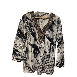 Boutique De India beaded embellished tunic top with black and white pattern.