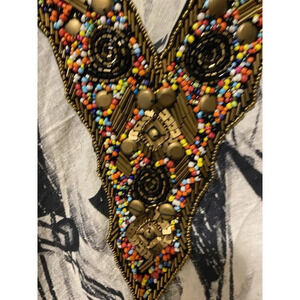 Lightweight top with intricate beaded design. Beautiful boho, bohemian, hippie feels. Very beautiful work. Nice artsy piece. Great for casual wear, office or workwear, business casual, or festival. Very versatile depending what you pair it with.