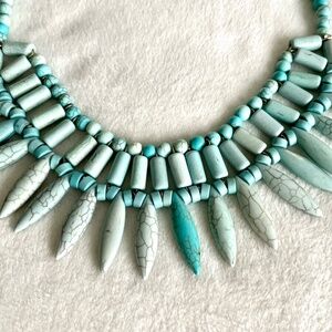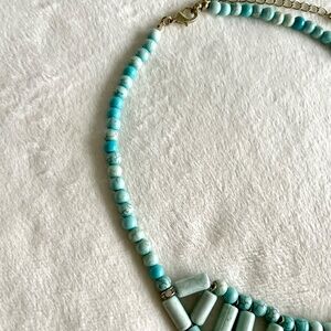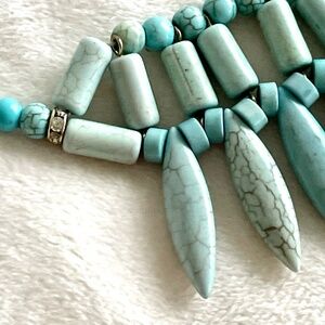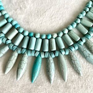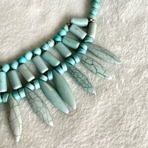 Materials: turquoise (I’m not able to test or verify the material), metal beads with rhinestones, and metal chain.
