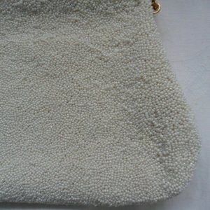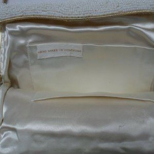 Beaded Vintage Handbag Purse White Glass Beads Hand Made Hong Kong Wedding