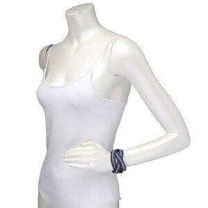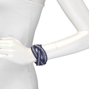 Beaded Wide Memory Wire Cuff Style Bracelet 3 Bands Jewels Gems Metallic Purple Blue Silver