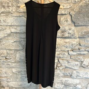 Black v neck dress with beading at front only. Black, silver beading and rhinestones. Excellent condition. Worn once. Measurements in pics: pit to pit and length.