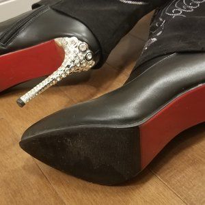 hell is 4", height to the top is 23", top of the boots is 16" round