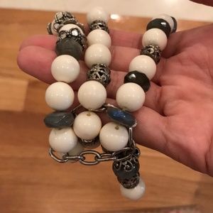 White and gray with silver details bracelets Set of 3 attached by pretty charm
