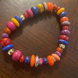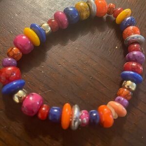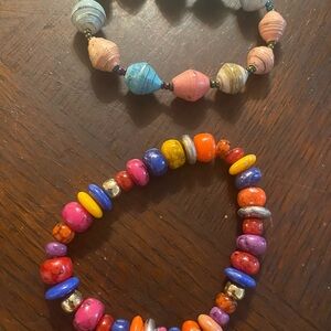 2 beaded bracelets multiple colors vibrant and fun to fit a medium wrist size or repurpose beads for a craft or own design in hood condition as seen in pictures