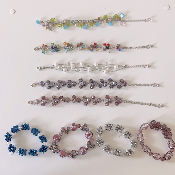4 stretchy bracelets. Elastic a little loose for the two purple ones.