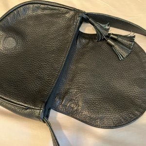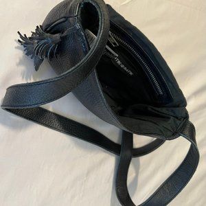 This beaded leather evening bag (model Lazare) comes from the famed Antik Batik shop on Rue du Foin, Paris. Designed in France and made in India, this beautifully handmade bag features tassels and authentic beadwork in cream, gold, and black. The bag is goat leather with a magnetic closure and a crossbody strap. Inside is a cotton lining and a zip pocket. The bag has never been used and is in primo condition. The bag is 8" wide, 6.5" tall, and 1.75" deep.