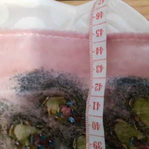 Hand stitched glass beaded scarf on pink fabric.