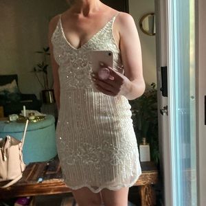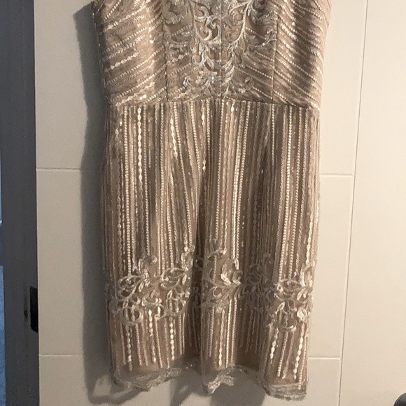 This dress has only been tried on NWT. It has beautiful beadwork and would make an excellent stagette or bridal shower dress.