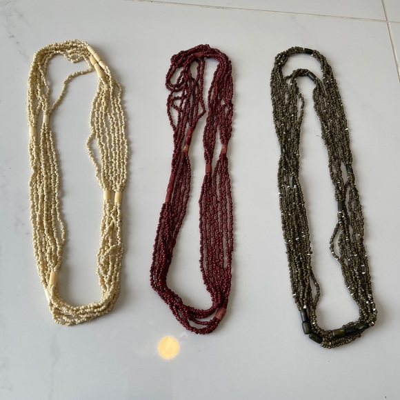 Bundle of 3 beaded necklaces. They are super gorgeous and long, can be doubled up. In great condition.