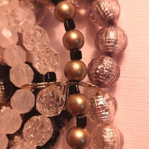 4 bracelets in one. Beaded bracelets with a gold tone bar attaching them all together with a lace bow.
