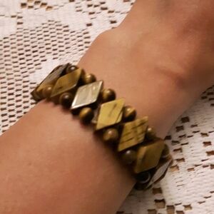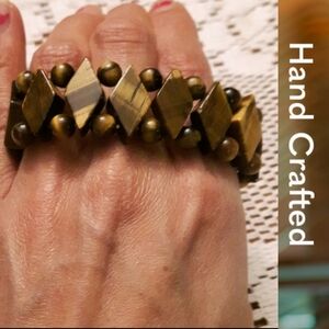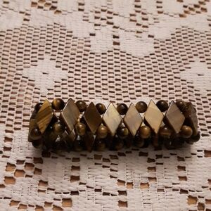 Beaded Stone tiger eye geometrical stretchy Brown bracelet