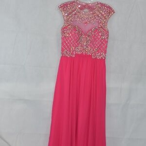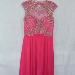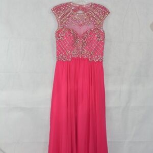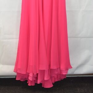 Another stunning formal for a Wedding, Prom or a special formal event. Loaded with Rhinestones, beads and sequins this beautiful dress has a keyhole back. It flows so elegantly. Lovely pink! SZ 8 by Madison James