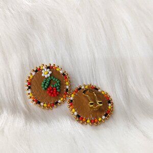 a strawberry plant beaded on faux leather and edged in fire colours!