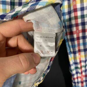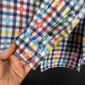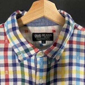 Beams Heart Skull Motif Multicolor Check Long Sleeve Button Up Shirt mens large