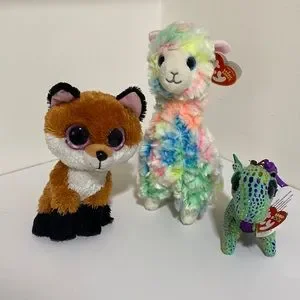 Meet Slick the Fox, Lola the Llama (with tag), and Cinder the Dragon (with tag), all in like-new condition.