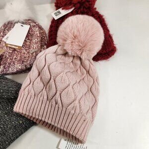 Beanie Pom Pom Lot Chaos Pricilla Pink Giftcraft Red Northern Comfort Gray NWT