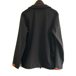 Water and wind resistant. Front zipper pockets. Two interior pockets. Small snag on front. ( last photo) Otherwise in good used condition.