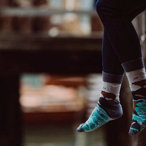 These unisex mis-matched socks represents bears in the northern hemisphere catching fish. Designed by SpoxSox.
