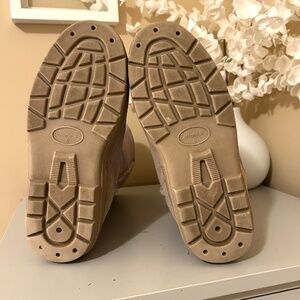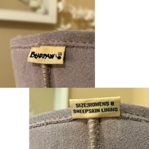 Excellent Condition! Take on Winter Conditions in Sheepskin Lined Suede Boots from BearPaws! A slightly taller style, the Meadow features a 10β Shaft, 1β Lug Sole, Suede Upper and Sheepskin Lining. Color is Stone Grey. A few very minor marks as noted in photos, overall in pristine condition. Sink you feet into these warm and comfy boots!