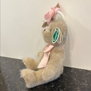 Bearington Collection Beverly Jointed Bear 12” Plush Limited Collectible Series . Adorable teddy bear featuring a soft beige fur and a charming pink bow. Perfect for cuddles and playtime.
