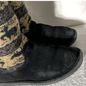 Bearpaw Black Tan Jacquard Deer Print Boots 8