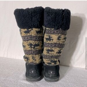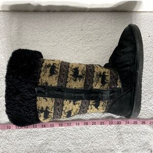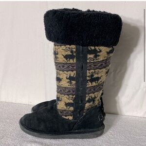 Bearpaw Black Tan Jacquard Deer Print Boots 8