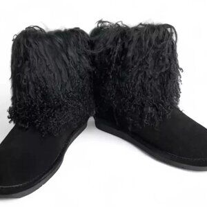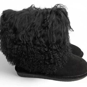Bearpaw Boo Black Shearling Wool Line Curly Lamb Fur Mongolian Sherpa Boots