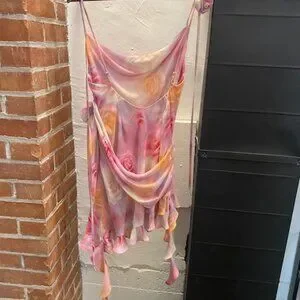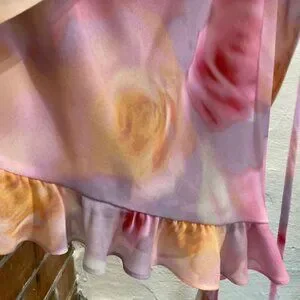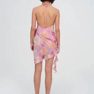 Crafted a dreamy rosebud printed chiffon, the Beate floral mini dress is a fun and flirtatious pink dress for all your Galentine's day events. This asymmetrical dress features a flattering cowl neckline, fixed rosettes at the hip and front neck, and cascading ruffles which pile on the romance.